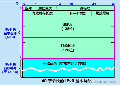 与4相比变化:128位,更多层次,可扩展收不,有效载荷,即插即用,首部8字节对齐。