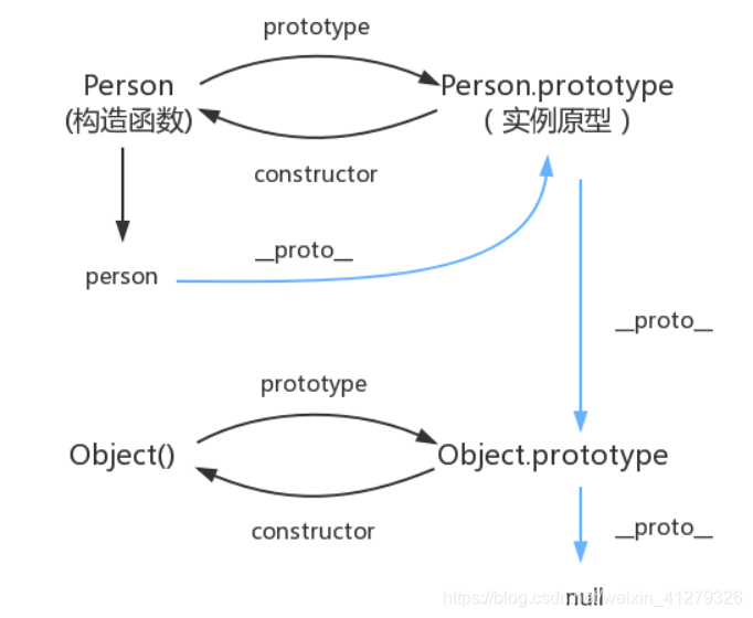 - 设置原型链,将obj的__proto__指向Person函数对象的prototype成员对象。obj.proto = Person.prototype;