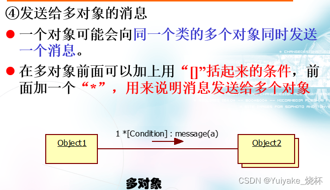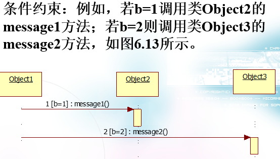 - 满足某种条件时才会传递给对象叫约束,在uml图中用作控制流,在[]中