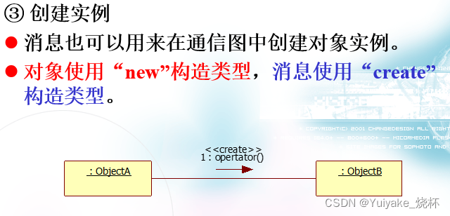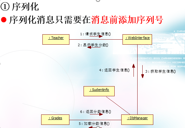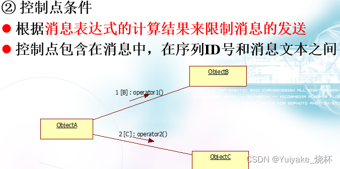 - 消息:组成:发送者,接收者,活动。消息可以:顺序执行、添加条件限制发送、 创建带有消息的对象实例、执行迭代。