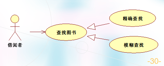 - 泛化关系:一般与特殊的关系。子用例继承父用例的行为和含义,还可以增加或覆盖父用例行为。